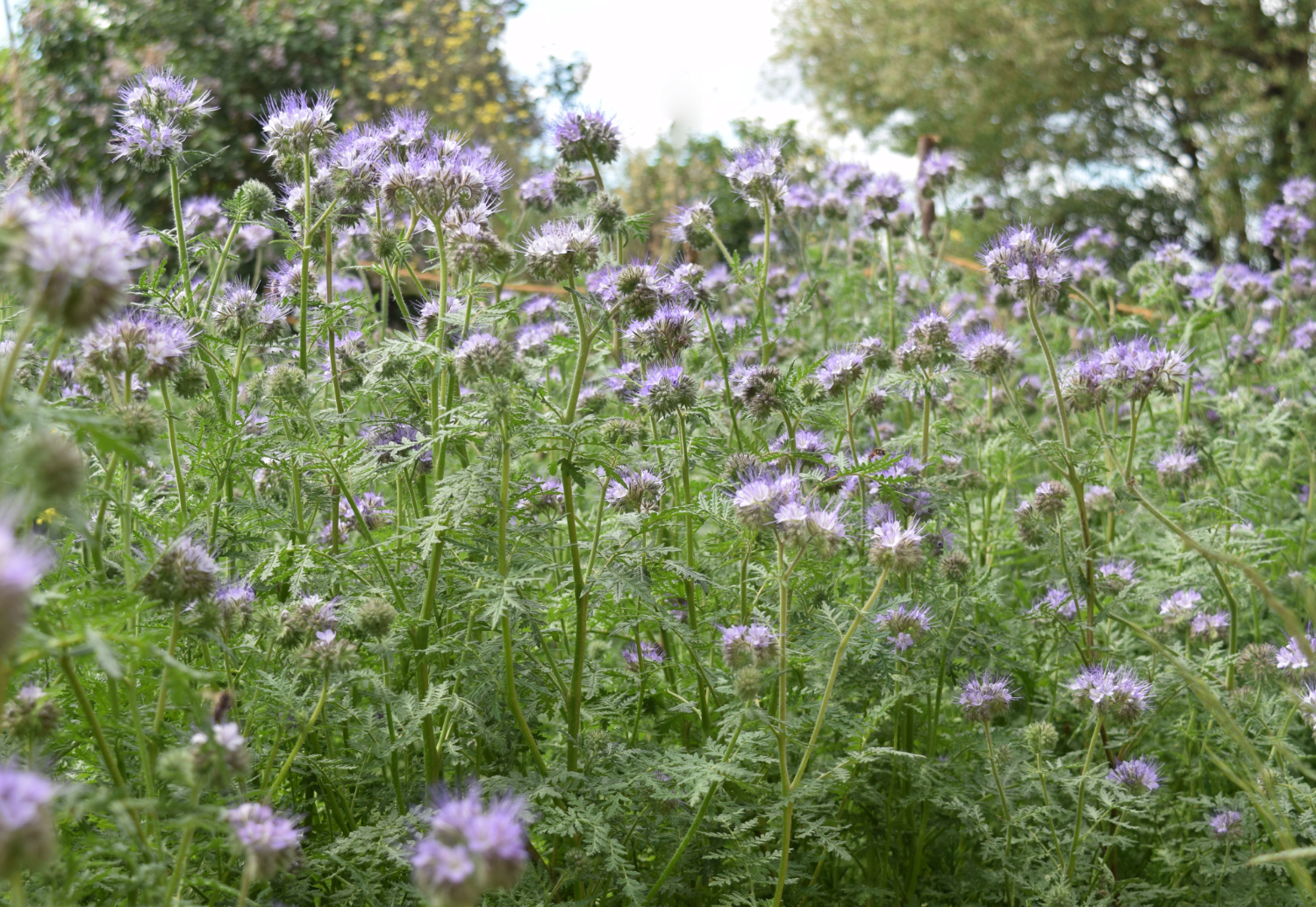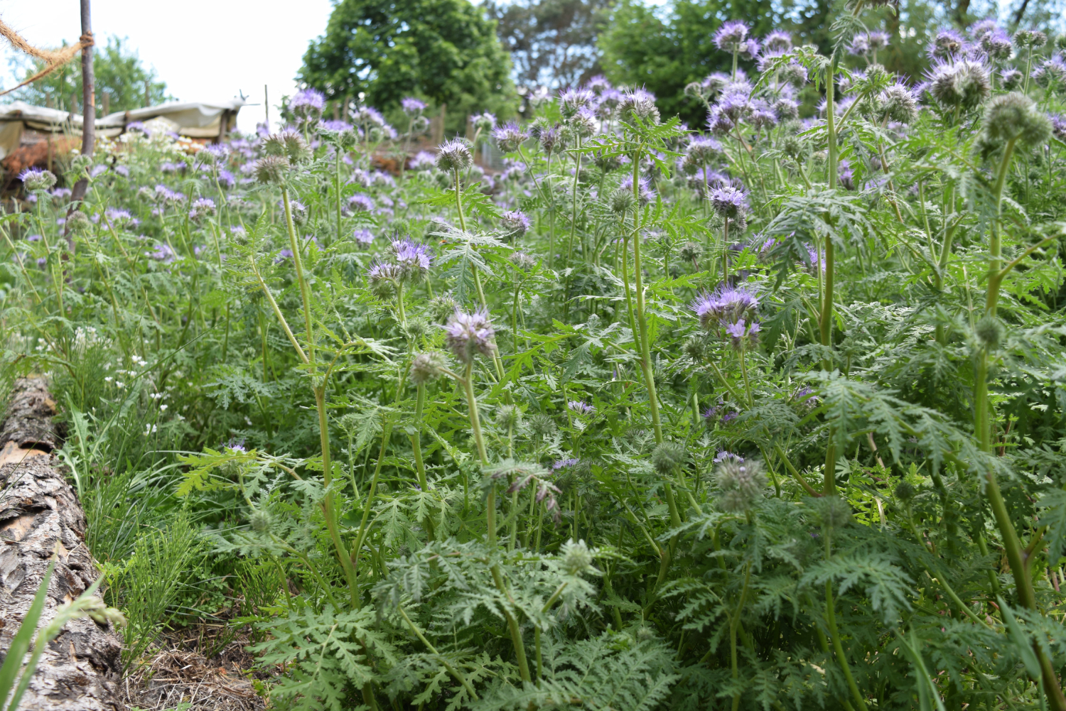Phacelia ist ein trockenheitsverträglicher Gründünger und hat sich deshalb in diesem sehr trockenen Frühjahr gut entwickelt. Zur Zeit sind in unserem Garten verschiedene Entwicklungsstadien zu sehen.