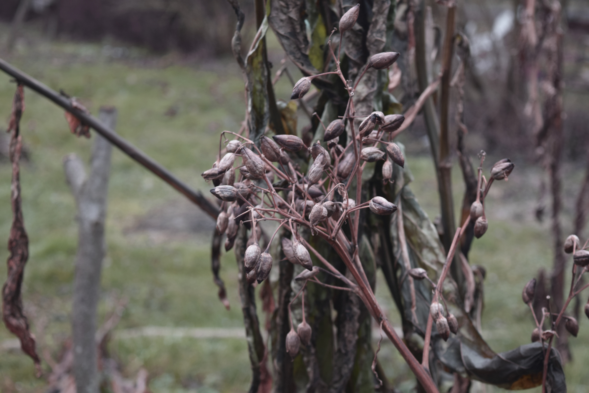 In unserem Garten bleiben alle Pflanzenreste über Winter auf den Beeten. Und länger ! Sie werden erst beräumt wenn der Platz auf dem sie stehen wieder benötigt wird. Auch die mehrjährigen Pflanzen werden erst zurückgeschnitten wenn der Neuaustrieb deutlich zu erkennen ist. Das Meiste wird dann gleich an Ort und Stelle als Mulch weitergenutzt.