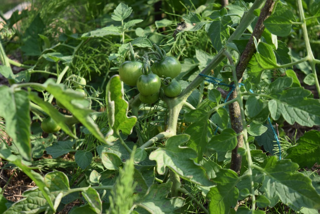 Im Anbaujahr 2021 wuchsen an dieser Stelle Frühkartoffeln und verschiedene Tomatensorten.